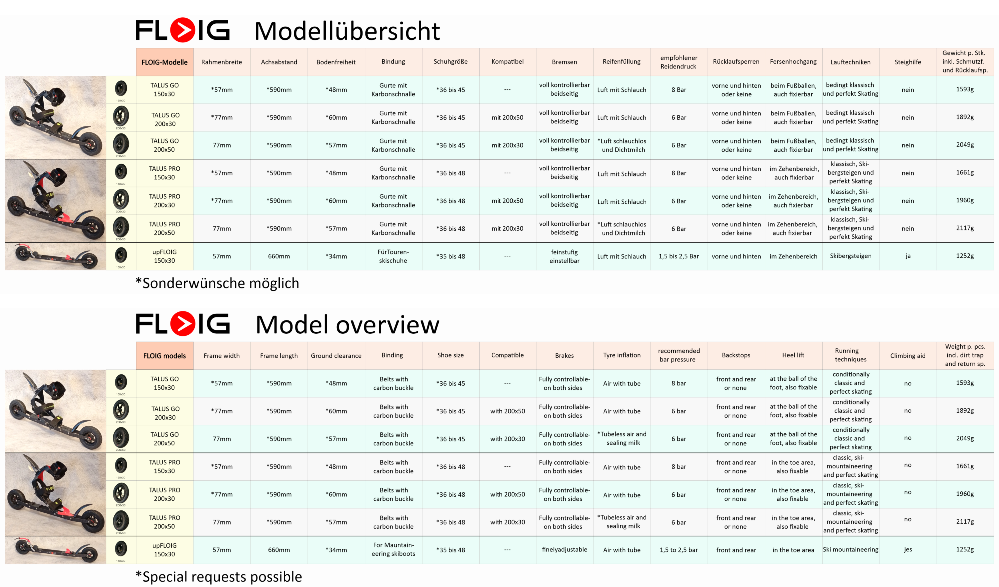 Die FLOIG TALUS Serie - bestehend aus dem TALUS PRO und TALUS GO - steht für kompromisslose Qualität, präzise Entwicklungsarbeit und höchste Fahrdynamik. Jedes Modell ist konsequent auf Performance in seinem Einsatzbereich optimiert – vom ultraleichtesten 150x30er für Agilität und Speed, über den vielseitigen 200x30er für Langstrecke und Ausdauer, bis hin zum 200x50er, der Offroad-Dominanz und Komfort perfekt vereint. Ein System, drei Spitzenmodelle – gebaut, um Maßstäbe zu setzen.